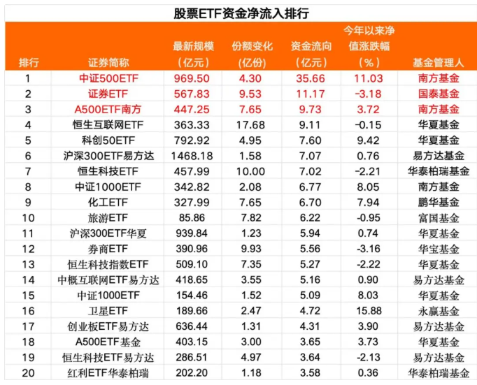 数据显示,头部基金公司旗下部分ETF净流入步伐持续。