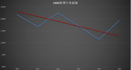 量化规模涨太快了,2025年规模又几乎翻了一倍,2025年的超额由于抱团小微盘虚高,实际中证500指增平均超额应该不足10%。