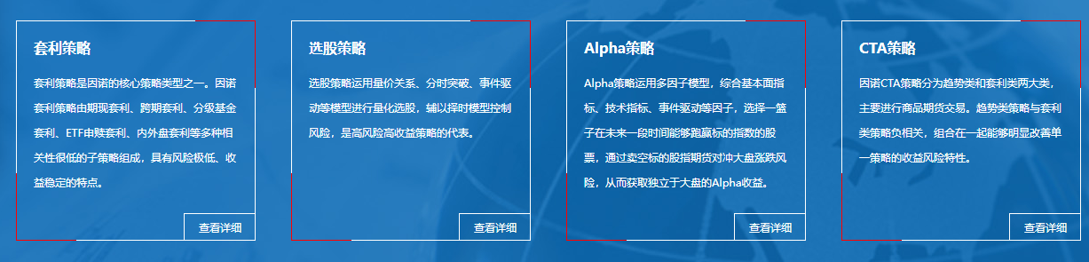 因诺专注于数量化投资领域。因诺相信,金融市场(包括股票、期货、期权、债券、外汇等)受基本面、技术面、心理面等诸多综合因素的影响,金融产品的量价特点可通过统计方法分析求得,并在未来重现。因诺致力于找出该特点,并以此指导交易。