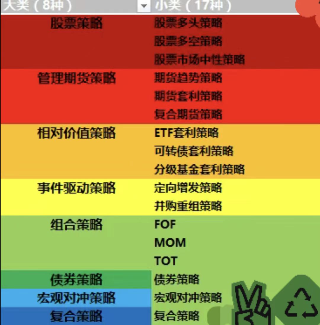 私募基金投资策略体系多元丰富,不同策略基于差异化的投资逻辑、标的选择与风险控制方式,形成了各具特色的收益风险特征。结合行业实践与主流分类标准,私募基金核心投资策略可归纳为八大类,涵盖17小类子策略,适配不同市场环境与投资者风险偏好。以下从核心逻辑、子策略拆解、风险收益属性等维度,对各类策略进行系统梳理与概括。