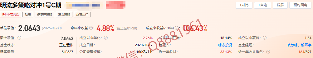 (1)产品①-------明汯多策略对冲1号C期