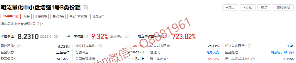 (2)产品②-------明汯量化中小盘增强1号B类份额