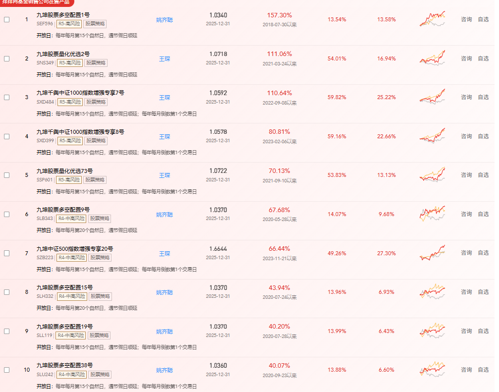 九坤投资(北京)有限公司是中国量化私募第一梯队机构,2012 年 4 月由王琛(清华计算机博士,曾任职千禧年管理)与姚齐聪(北大金融数学硕士)创立,2014 年 6 月在基金业协会登记为私募证券投资基金管理人(登记编号 P1003313),核心定位是 “以量化挖掘规律、还原价值的科技公司”,长期深耕量化投资,管理规模超 600 亿元(截至 2025 年二季度),连续多年蝉联私募金牛奖,素有 “北九坤” 之称。九坤投资投资团队于2010年开始进行国内期货、证券的量化投资,并于2012年正式成立投资公司,是国内最早开始从事专业量化交易、高频交易的团队之一。现公司已获得证券投资私募资格。公司专注于股票、期货市场的量化交易和高频交易。