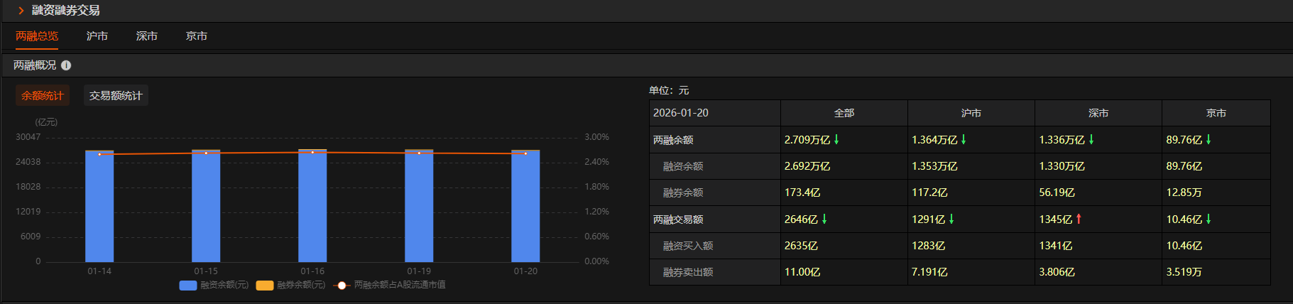 融资余额:1 月 14 日为 2681 万亿,1 月 20 日为 2692 万亿,整体保持平稳,说明政策主要影响的是新增融资买入,而非存量合约的平仓。
