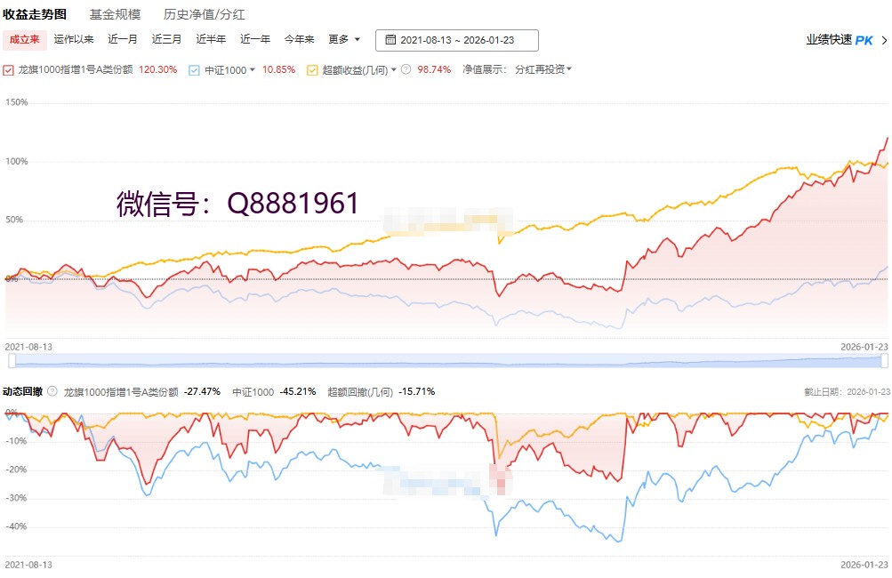 该只私募基金产品为R4中高风险,今年以来的收益为0.71%,成立1.1年以来的收益为13.87%,其中我们来看一下具体数据,成立以来的夏普比为1.38,成立以来的回撤为5.96%,单位净值为1.1387,通过图片,可以观察到这支基金产品的基金规模,截止到2026/1/23的累计净值为1.1387。想追踪最新的基金信息,微信扫描文章下方二维码了解更多信息,加我微信不迷路。