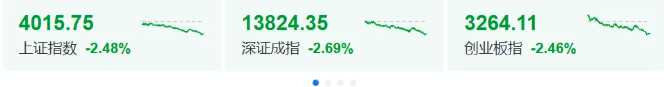 再看回A股情况,三大指数均跌超2%。截至收盘,沪指跌2.48%,深成指跌2.69%,创业板指跌2.46%。