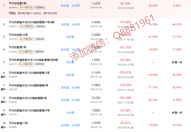 平方和旗下的私募产品(仅限图片展示内容)近一年年总收益均为正,其中最低收益为14.95%,最高收益为76.38%,涵盖多种不同策略的产品,由基金管理人进行管理,年化收益率最高为66.27%,最低为8.24%,想了解更多信息扫描文章下方二维码,了解更多信息。
