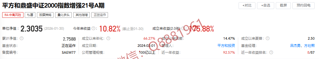 4.1.2产品②-------平方和鼎盛中证2000指数增强21号A期
