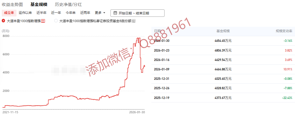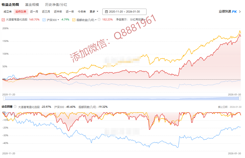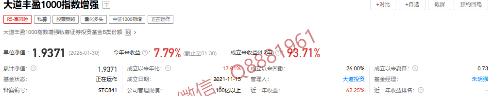 该只私募基金产品为R5高风险,今年以来的收益为-2.88%,成立8.5年以来的收益为122.80%,其中我们来看一下具体数据,成立以来的夏普比为1.50,成立以来的回撤为5.16%,单位净值为2.2280,通过图片,可以观察到这支基金产品的基金规模,截止到2026/1/30的累计净值为2.2280。想追踪最新的基金信息,微信扫描文章下方二维码了解更多信息,加我微信不迷路。