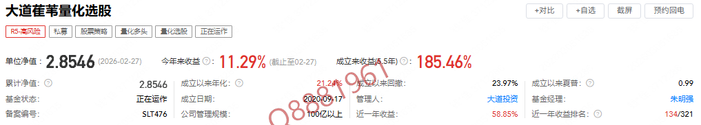 3.1.1产品①-------大道萑苇量化选股