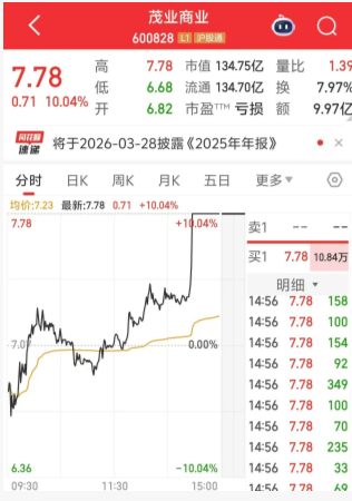 其中,零售概念午后拉升,茂业商业4分钟内直线涨停,走出5天3板。