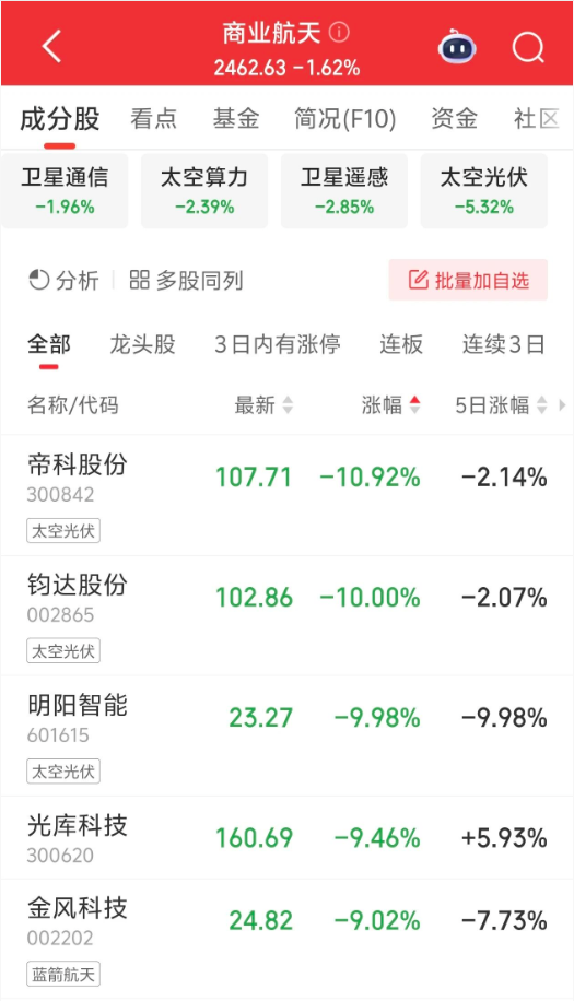 太空光伏概念大幅回调