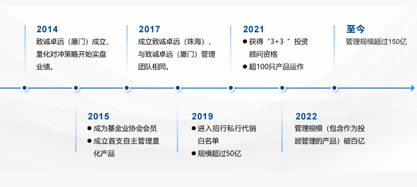 致诚卓远(珠海)投资管理合伙企业(有限合伙)于2017年6月19日成立,于2017年10月25日完成私募基金管理企业登记备案,总部位于云南省昆明市。企业于2017年10月25日通过基金业协会备案,私募投资基金发行人登记号为P1065479。企业与2014年成立的致诚卓远(厦门)投资管理有限公司具有相同的投资团队,专注于以量化投资为主的私募证券投资基金,发行的量化产品主要分为股票阿尔法对冲型和指数加强型两类。以投资总监史帆为核心的企业投研团队成员均为北京大学毕业并有多年金融或投资从业经历,拥有卓越的计算机编程能力、扎实的数理统计建模功底、丰富的金融学理论知识和实践经验,有能力通过对证券市场的科学观测,发现规律,设计计算机算法,构建超越指数表现的股票组合;此外,企业的合规和运营团队成员也具有私募机构合规运营和私募产品募集、成立、备案、运行的丰富经验。