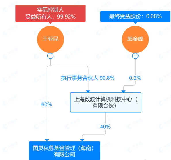 海南图灵私募的出资人包括王亚民、上海数渡计算机科技中心(有限合伙),经股权穿透后,王亚民持股99.92%,是公司大股东与实际控制人;郭金峰持股0.08%,也是股东之一。