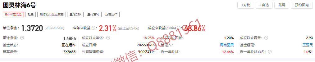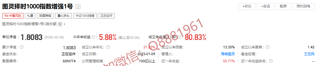 该只私募基金产品为R4中高风险,今年以来的收益为5.88%,成立3.1年以来的收益为80.83%,其中我们来看一下具体数据,成立以来的夏普比为1.42,成立以来的回撤为13.35%,单位净值为1.8083,通过图片,可以观察到这支基金产品的基金规模,截止到2026/2/6的累计净值为1.8083。想追踪最新的基金信息,微信扫描文章下方二维码了解更多信息,加我微信不迷路。