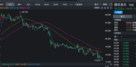 贝壳,下跌2.20%$腾讯音乐-SW(HK|01698)$