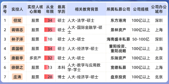 根据私募排排网不完全统计,头部私募实控人出自中国人民大学(本硕博皆可)的有7位,占比约2.9%。其中6位为百亿私募实控人,包括东方港湾但斌、景林资产蒋锦志等。