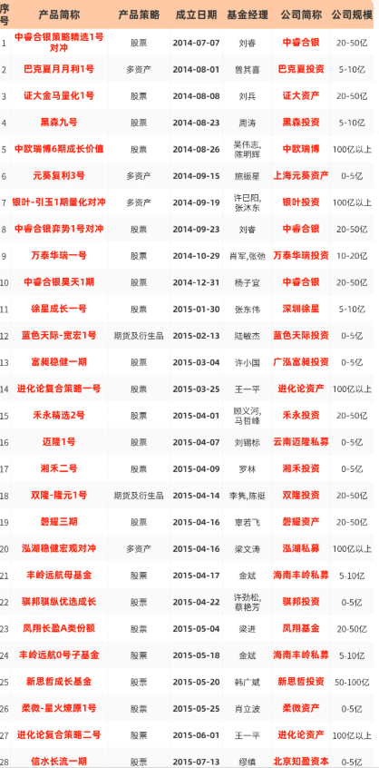 其中,中睿合银有3只产品在列。海南丰岭私募、海南希瓦、黑森投资、进化论资产、骐邦投资、柔微资产、深圳凯丰投资、双隆投资、通和投资、新思哲投资、中欧瑞博、资瑞兴投资等12家私募均有2只产品在列。组建优质百人私募群,专注私募策略研究、收益复盘,百万起投朋友私信微信Q8881961。