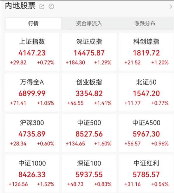 A股全线上涨