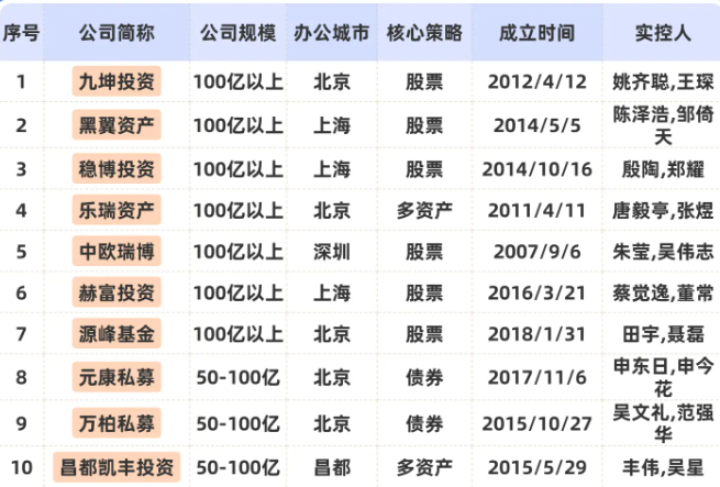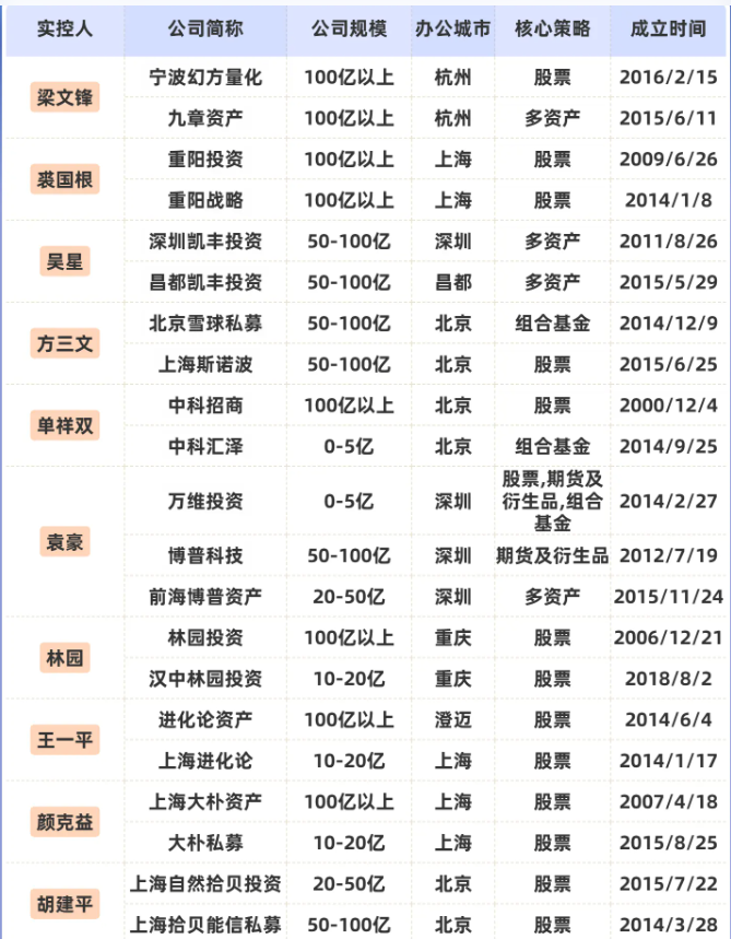 九坤、黑翼、稳博等10家私募拥有双实控人!