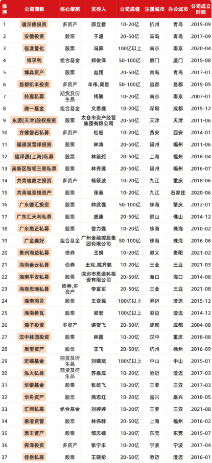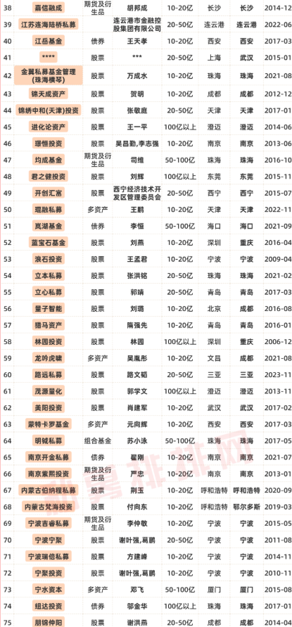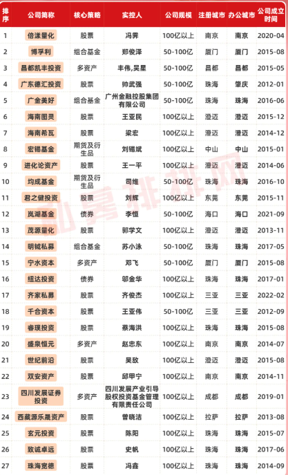 办公及注册地均不在“北上广深杭”的私募(规模在50亿以上)