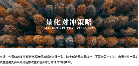 量化对冲策略:采用完全对冲方式,多头端为指数增强组合,对冲端以股指期货为主,不做基差择时,旨在获取稳定的绝对收益,降低市场波动风险。