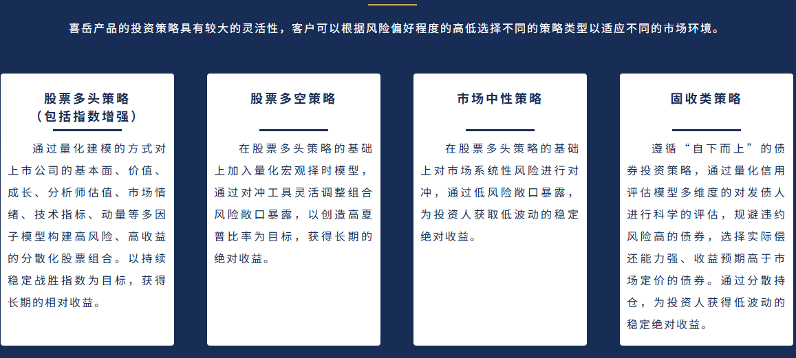 喜岳投资的所有投资策略均以经济、金融、会计及统计理论为研究出发点,并积极融入ESG投资理念,以客观的历史验证为驱动,利用严谨的量化投资技术,为国内外机构客户及高净值客户提供最科学的权益类和固定收益类资产管理服务。