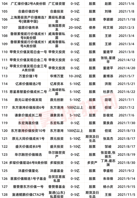 百亿私募旗下的产品中,例如:11只东方港湾价值投资系列产品;日斗投资的“日斗枫藤价值一号”、“日斗牵牛价值一号”、“日斗国强价值”等5只产品;明汯投资旗下的“明汯价值成长1期”;君之健投资旗下的“君之健翱翔价值”等。