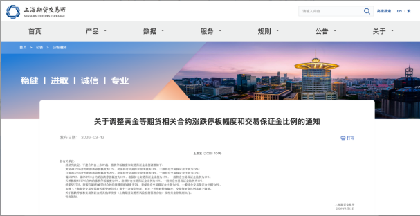 涨跌停板幅度和交易保证金比例 3月12日,上海期货交易所发布关于调整黄金等期货相关合约涨跌停板幅度和交易保证金比例的通知。 经研究决定,下述合约自上市时起,涨跌停板幅度和交易保证金比例调整如下: 黄金AU2704合约的涨跌停板幅度为17%,套保持仓交易保证金比例为18%,一般持仓交易保证金比例为19%; 白银AG2703合约的涨跌停板幅度为20%,套保持仓交易保证金比例为21%,一般持仓交易保证金比例为22%;汇聚资深投资者,共研私募策略、复盘收益,百万起投加微信 Q8881961 入群 镍NI2703、锡SN2703合约的涨跌停板幅度为12%,套保持仓交易保证金比例为13%,一般持仓交易保证金比例为14%; 天然橡胶RU2703合约的涨跌停板幅度为9%,套保持仓交易保证金比例为10%,一般持仓交易保证金比例为11%; 纸浆SP2703、胶版印刷纸OP2703合约的涨跌停板幅度为7%,套保持仓交易保证金比例为8%,一般持仓交易保证金比例为9%。 如遇《上海期货交易所风险控制管理办法》第十三条规定情况,则在上述涨跌停板幅度、交易保证金比例基础上调整。 关于涨跌停板和交易保证金的其他事项按《上海期货交易所风险控制管理办法》及相关业务规则执行。 优质私募投资群开放,聚焦策略优化、收益分析,详聊微信 Q8881961