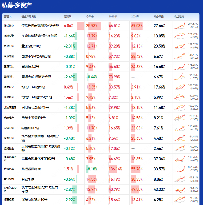截止至2026年3月6日部分基金净值周涨跌幅(公募&私募)具体情况【有私募投资需求+微信Q8881961】