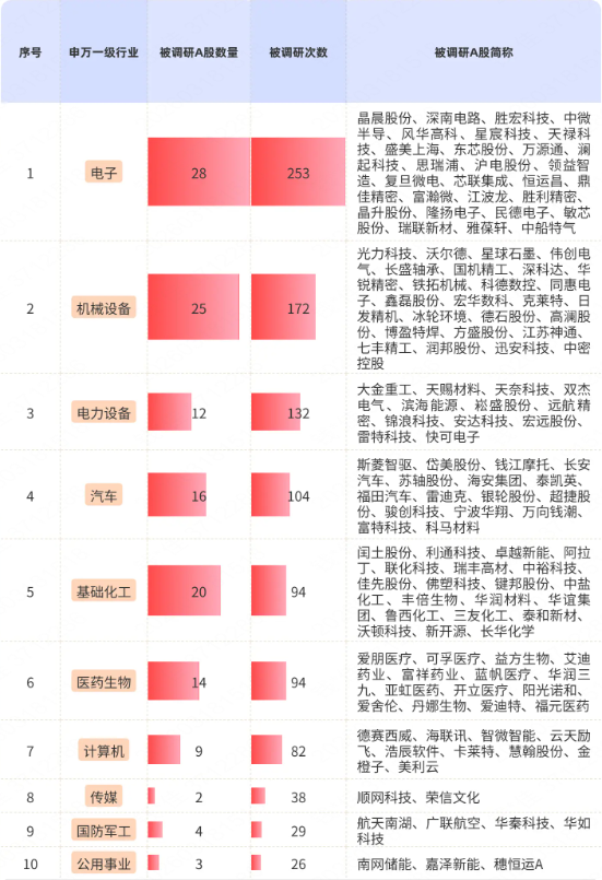 上半月公募调研次数前十行业