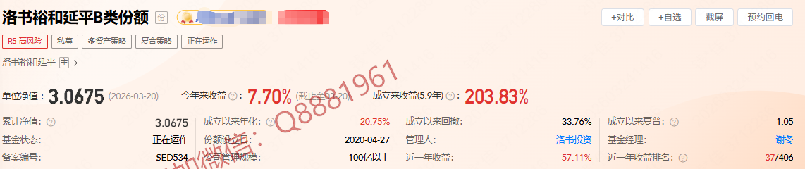 该只私募基金产品为R4中高风险,今年以来的收益为3.69%,成立2.3年以来的收益为42.73%,其中我们来看一下具体数据,成立以来的夏普比为1.27,成立以来的回撤为4.40%,单位净值为1.4273,通过图片,可以观察到这支基金产品的基金规模,截止到2026/3/20的累计净值为1.4273。诚邀进百人私募投资群,深度解析私募策略与收益,百万起投可加微信Q8881961详聊。