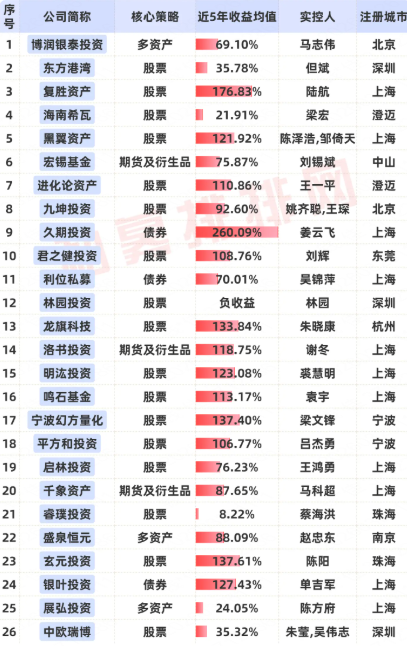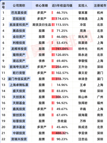 老牌私募近5年业绩一览