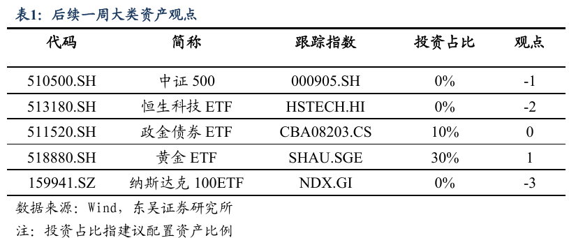 ➢ 根据我们上述行情研判,大类资产配置方面,我们认为后续一周: