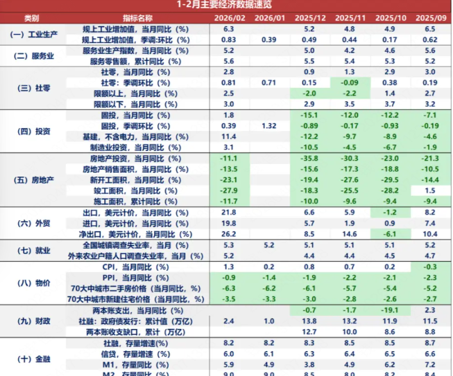 2025年下半年,国内经济经历了一段“至暗时刻”,投资、消费逐月下滑,内需大幅滑坡。然而进入2026年开春,风向悄然生变,投资端,基建、制造业投资明显回暖,房地产投资的负增长也大幅收窄。