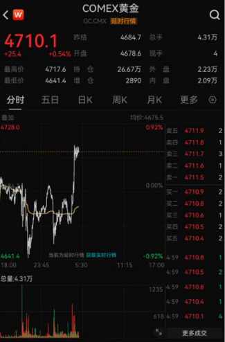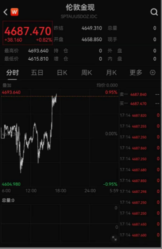 4月7日,金价继续震荡。截至发稿,伦敦金报4687.47美元/盎司,上涨0.82%;COMEX黄金报4710.1美元/盎司,上涨0.54%。