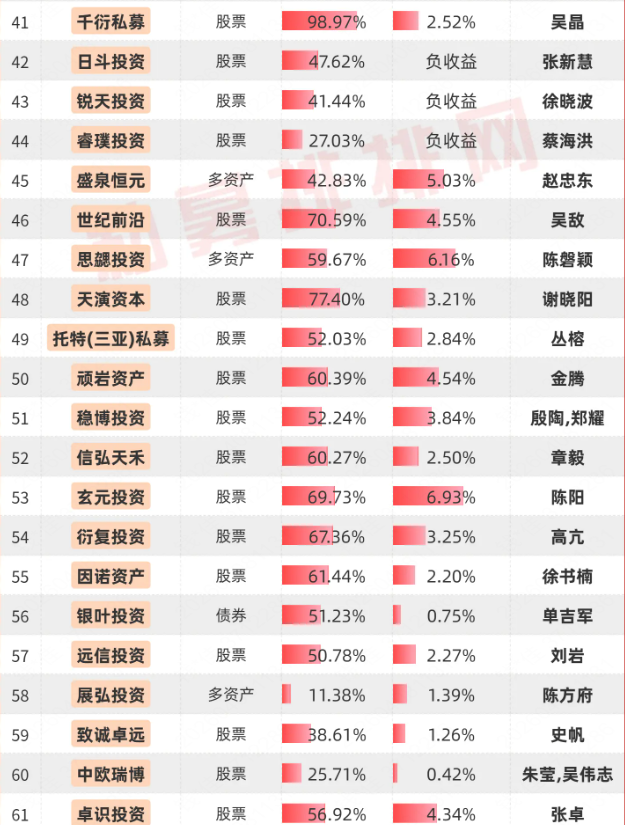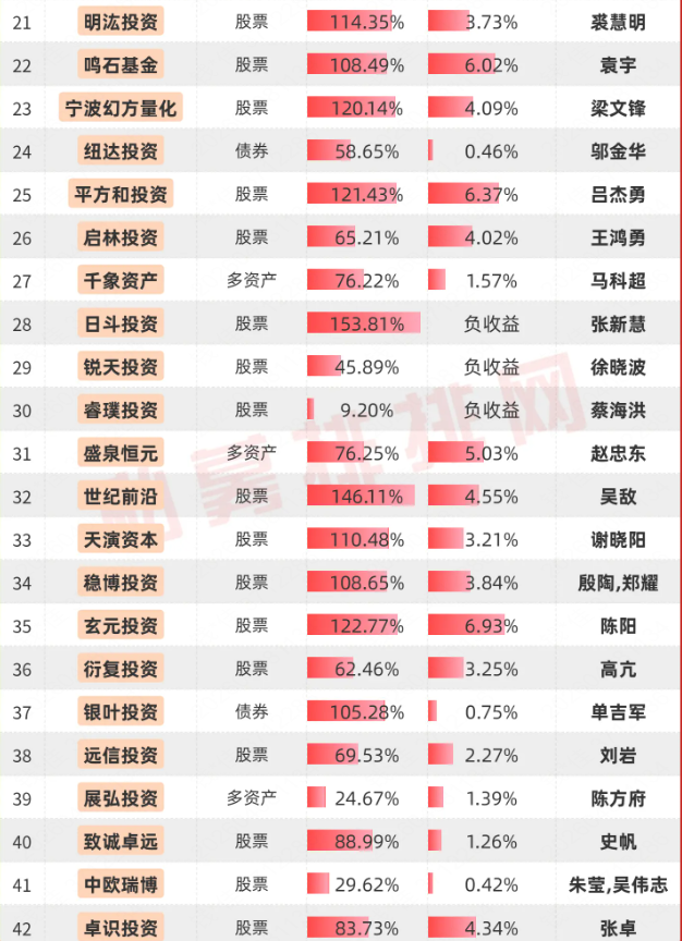 复胜资产等42家百亿私募有近5年业绩展示