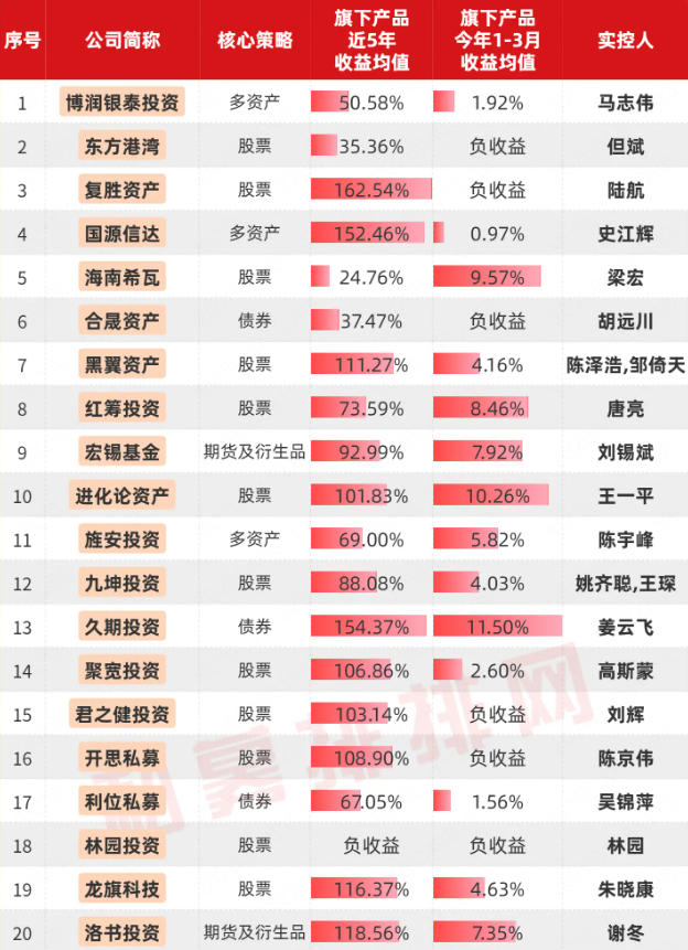 东方港湾、国源信达等61家百亿私募有近3年业绩展示