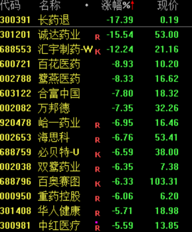 下跌方面,医药股冲高回落,诚达药业、汇宇制药跌超10%。