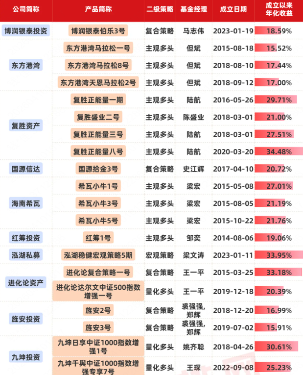 我们做了一组筛选:截至2026年3月末,成立满3年、产品规模超过3亿元、成立以来年化收益率在15%以上。在这把“苛刻”的尺子下,最终入围者寥寥,但这些产品却可能是私募业中真正值得关注的长期主义者。