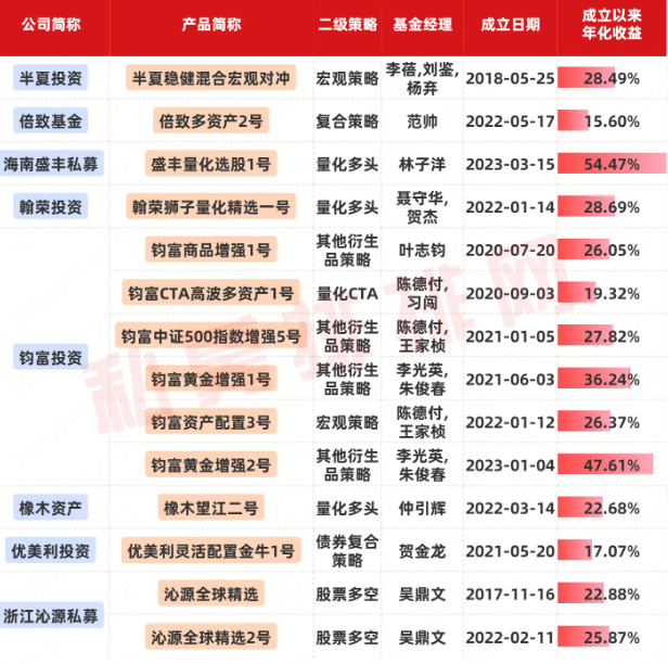 来自50-100亿私募的仅14只!钧富投资独占6只!