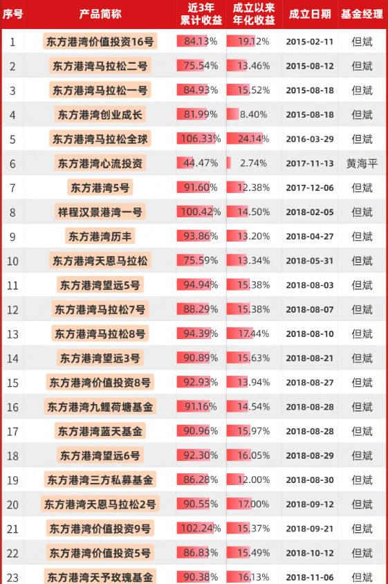东方港湾旗下私募产品的最新业绩