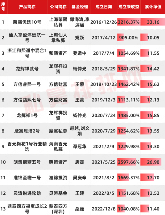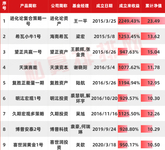 私募“十元基”产品全名单
