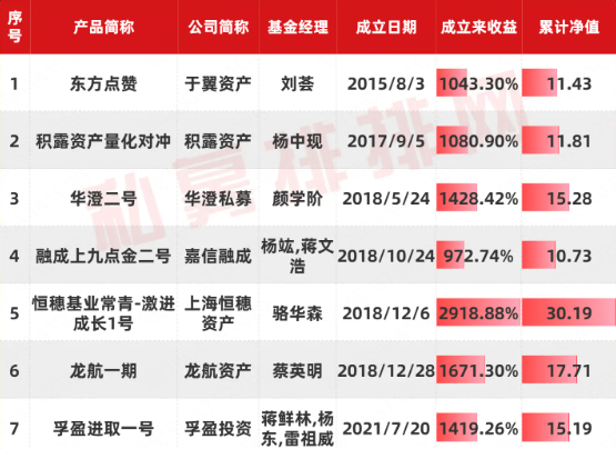 此外,龙辉祥投资杨仲光旗下两只主观多头产品在列,其中“龙辉祥1号”累计净值为15.85,该产品成立于2020年7月,成立以来收益达1458%。龙辉祥投资成立于2015年,公司主要投资管理和研究人员具有15年以上的投研经验。公司的投资理念是在严格控制风险的情况下追求最大收益,运用权变理论,因时制宜的投资策略。诚邀高净值人士入群,专业解析私募逻辑与收益,百万起投加微信 Q8881961