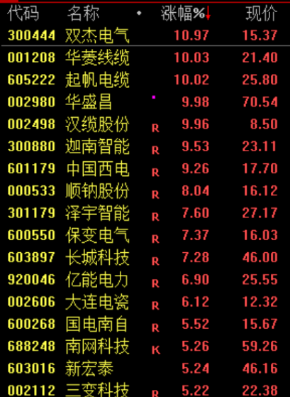 电网设备板块活跃,华菱线缆、起帆电缆等涨停。