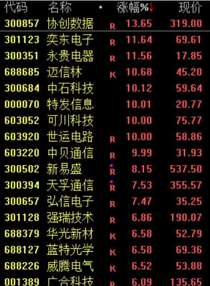 算力硬件股拉升,特发信息涨停,新易盛涨超8%。