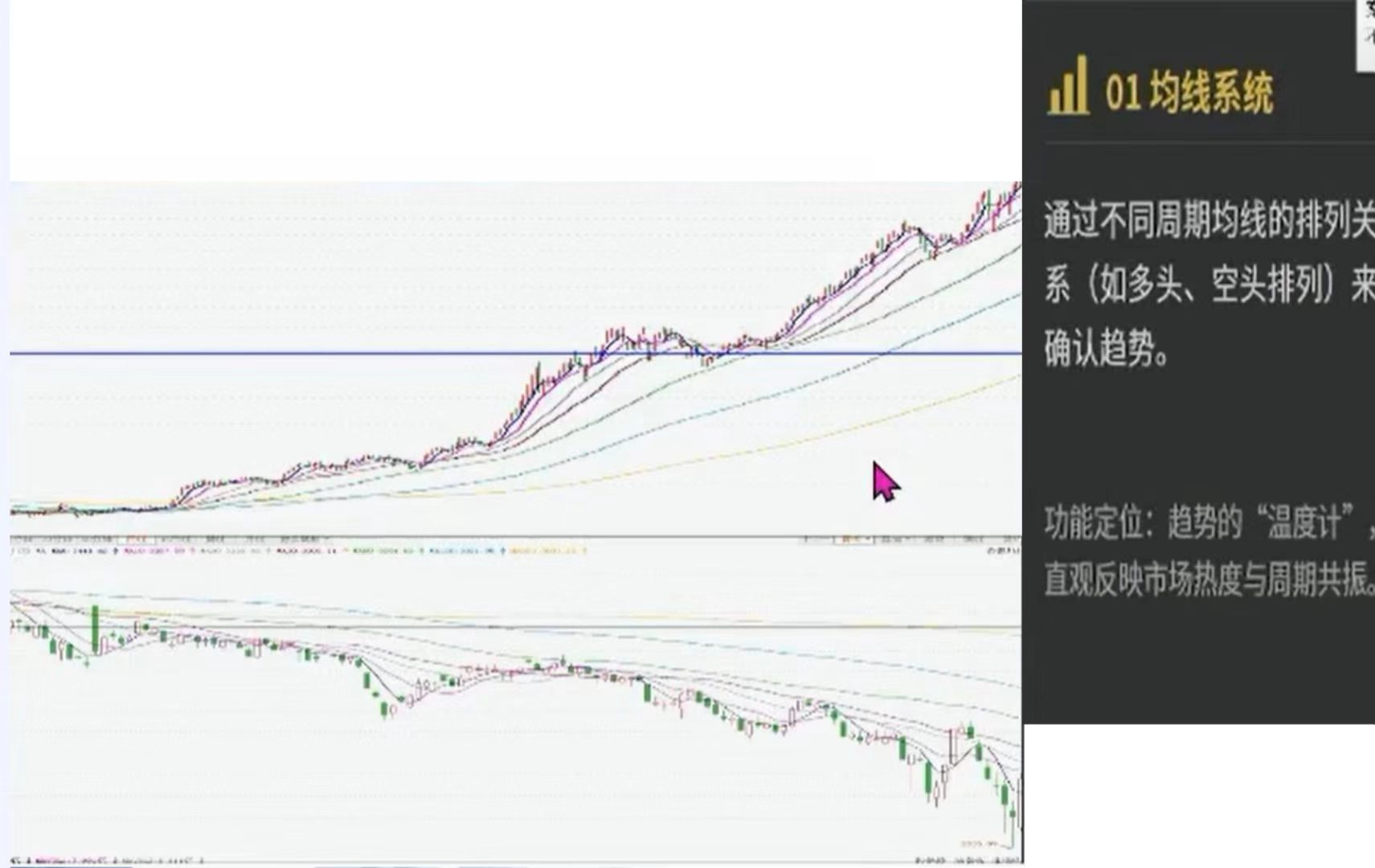 ①均线系统:通过不同周期均线的排列关系(如:多头、空头排列)来确认趋势【功能定位:趋势的‘温度计’,直观反映市场热度与周期共振】