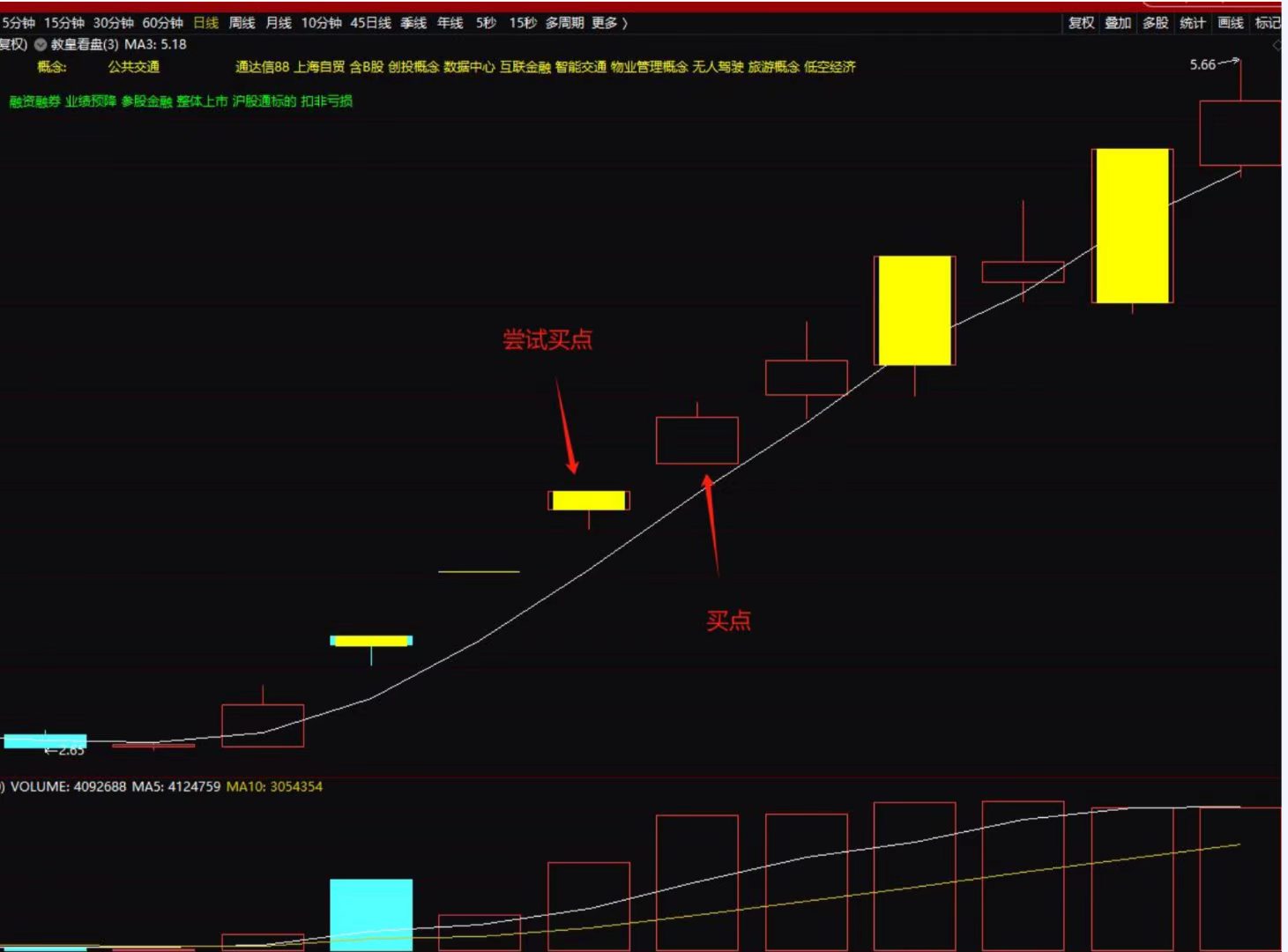 右侧交易:是在趋势确认后,顺着方向进场,也就是 “涨起来再买,跌下去再卖”,核心是顺势而为。(上图跟随箭头趋势买入属于右侧交易)