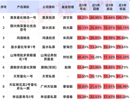 9只量化多头脱颖而出,山海基金、广州天钲瀚在列!