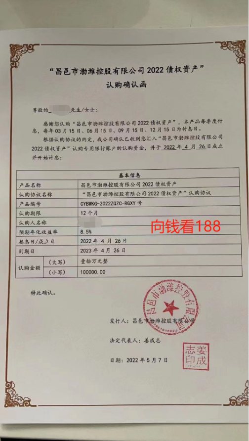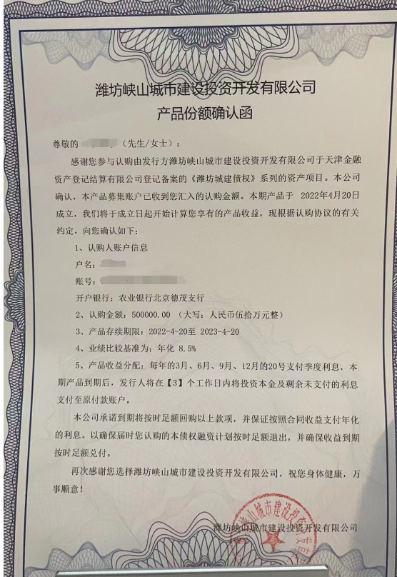 新闻来自贴吧投资人反馈,合同封面,确认函,合同约定的付息日发上来,我买的青州城投一年期已经在2023年4月21号到期,目前为止只收到10万本金,剩下本金和到期前的合同期内利息没收到,打电话给青州那边,说5月底兑付20%本金,但是迟迟没到账,还有人说你6月20号会付,我都已经到期了,6月20号根本就不会付我利息,6月20付的是还在存续还没到期的投资人利息,我会持续报道我在青州城投的遭遇!